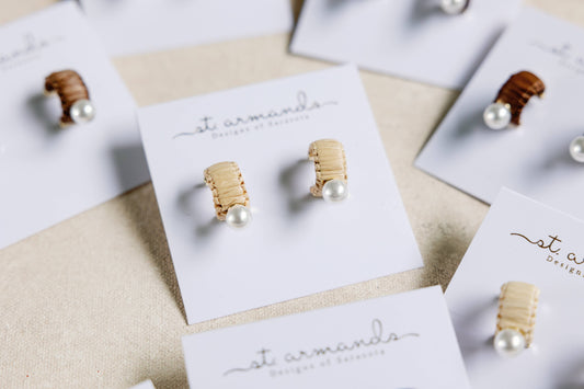 Mini Natural Raffia and Pearl Huggie Hoop Earring