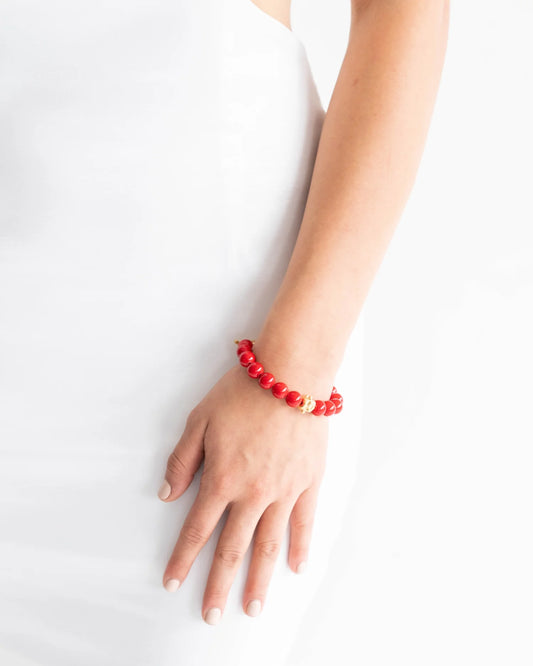 Bailey Stretch Bracelet | Handcast Gold Bead & Red Coral Stretch Bracelet