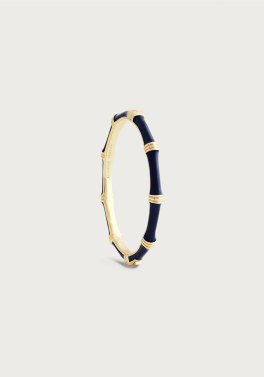 Bamboo Enameled Hinged Bangle - Atlantic Navy Blue