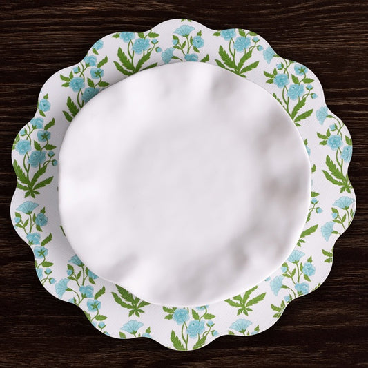 VIDA Blue Hydrangea and Floral Reversible Round Placemat Set | Blue & Green