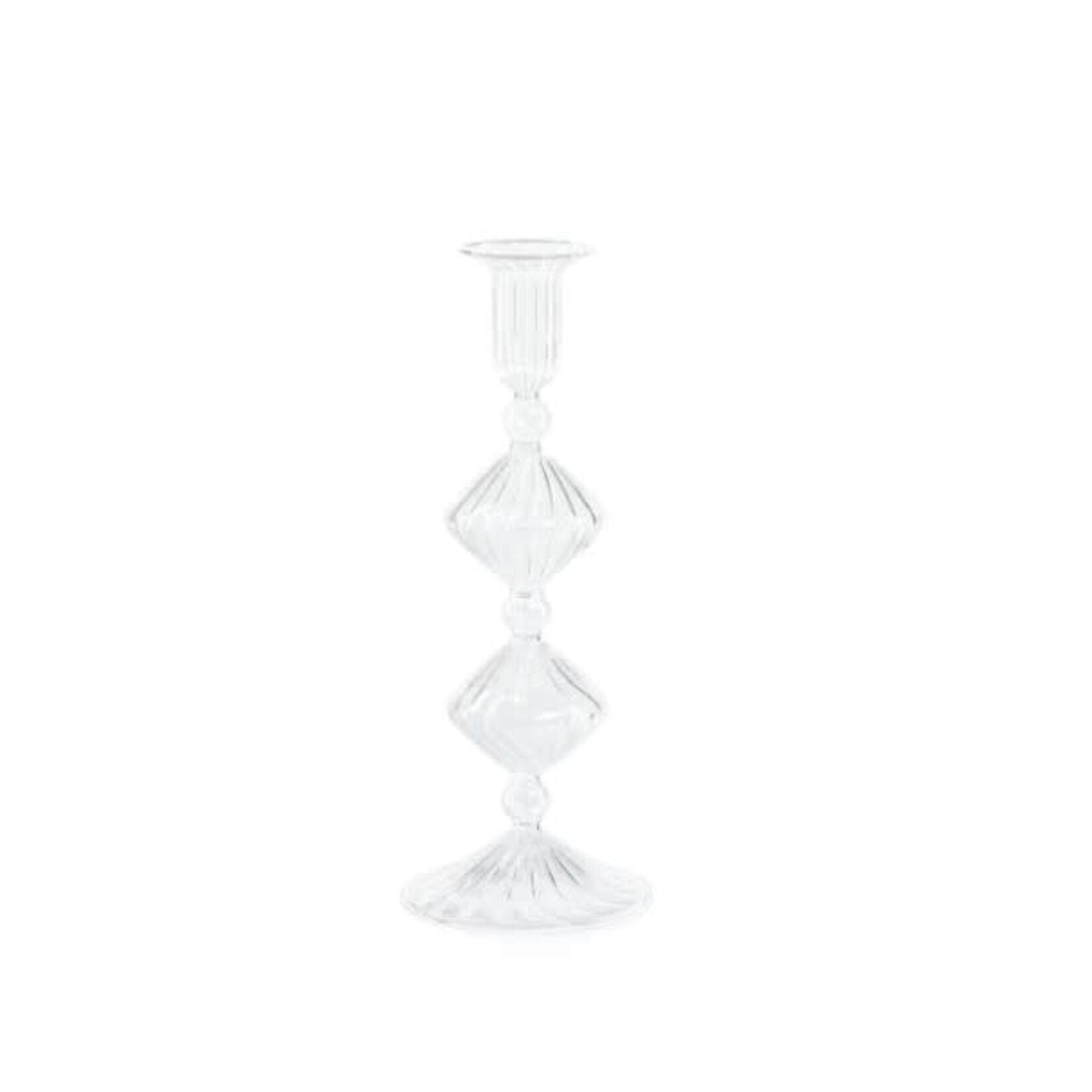 Crafted from clear ribbed glass, this taper holder will add a touch of simple sophistication to your tablescape. Buy a pair or mix with the 13” size.