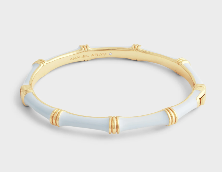 Bamboo Enameled Hinged Bangle - Pale Blue