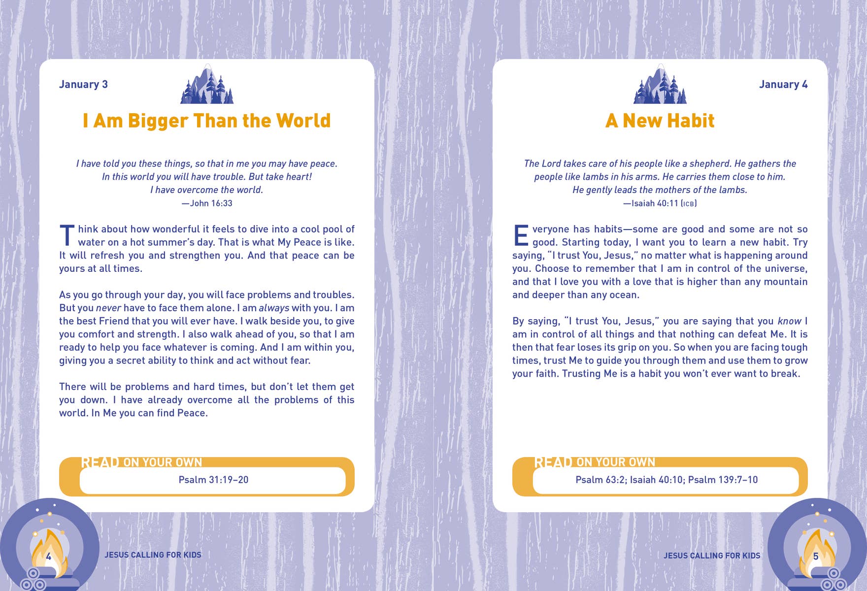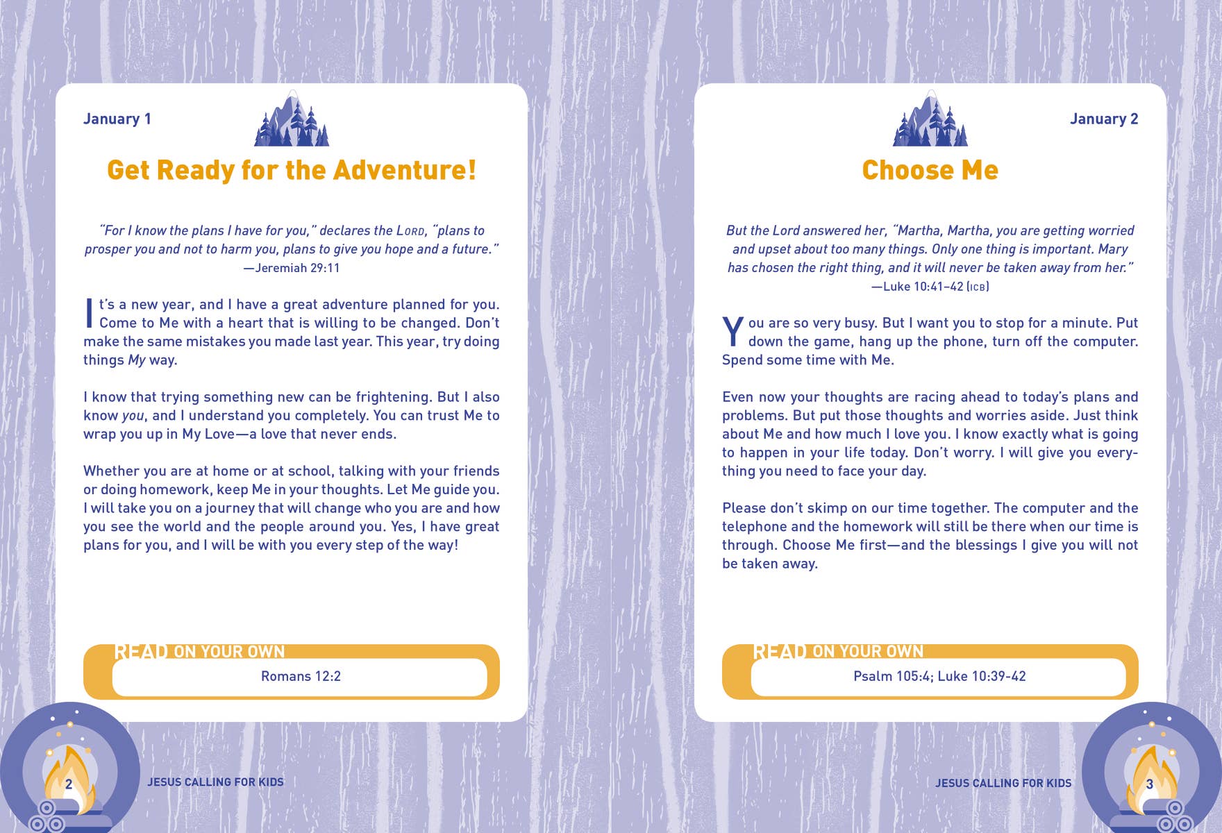 Jesus Calling: 365 Devotions for Kids (Boys Edition) is adapted from the bestselling Jesus Calling, with each day's devotion having the same theme as the adult version, as well as written-out Scriptures. Featuring 365 devotions that are easy-to-read in kid-friendly language and are geared towards boys ages 8 to 12 years.