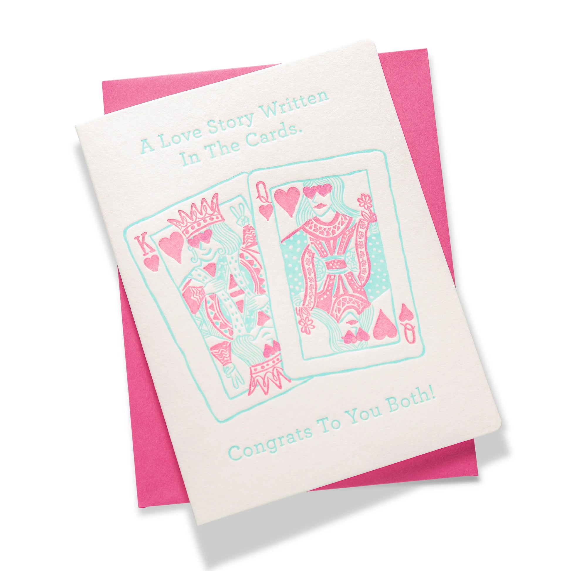 For the perfect pair whose love was truly meant to be—this charming card features a King and Queen of Hearts and the message: “A love story written in the cards. Congrats to you both!” Ideal for engagements, weddings, or anniversaries, it’s a playful and heartfelt way to celebrate a match made in card-deck heaven.