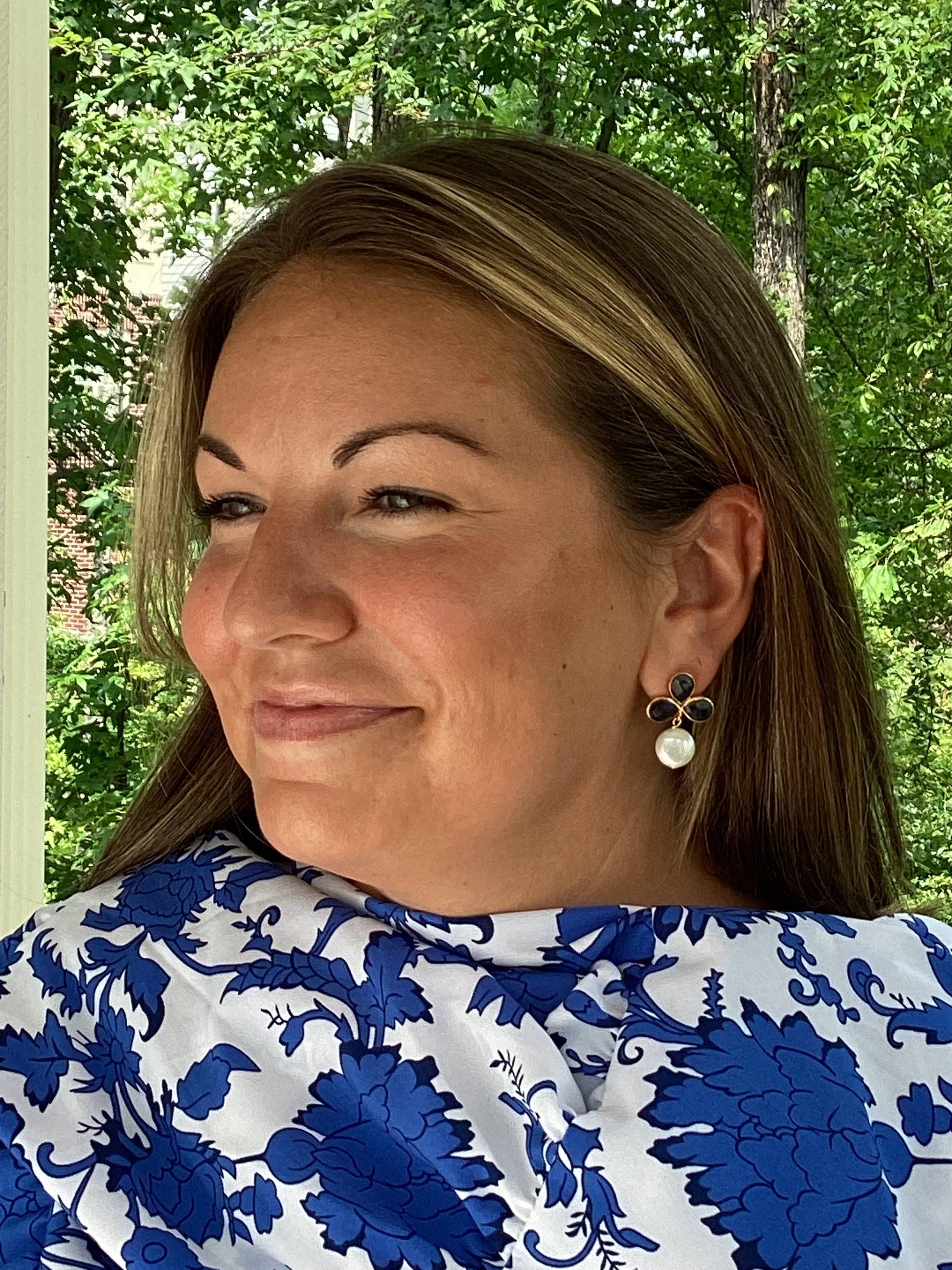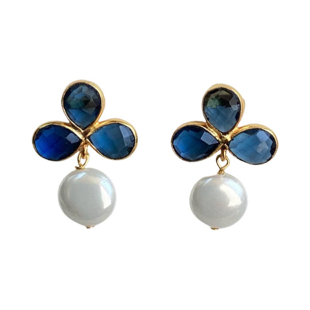 Semi-precious sapphire gemstone posts accented with a freshwater pearl drop.